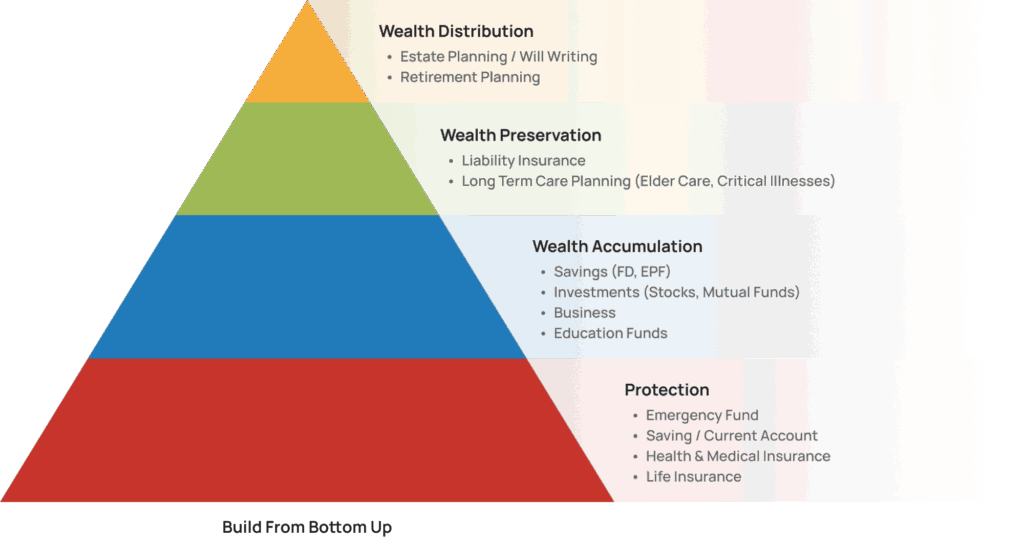By dedicating just 10% - 20% of your wealth to proper planning, you can secure the entire pyramid. With the right advice and planning, you can live worry-free, knowing your financial future is well taken care of.